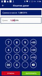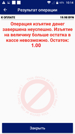Данное сообщение актуально для операций, сопровождающихся изъятием наличных из кассы, таких как возврат, аннулирование и изъятие наличных.