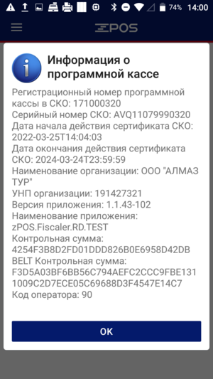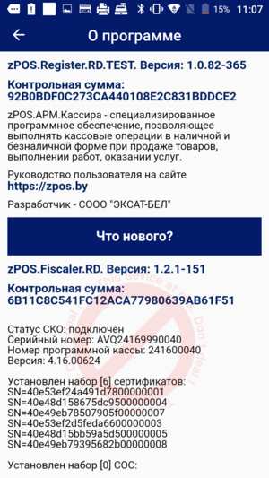 О программе - отображается информация о модулях всей системы, версии программного обеспечения.