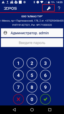 В верхней части экрана авторизации пользователя при нажатии кнопки с ключом, откроется окно Диагностики.