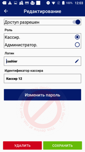 Новые значения параметров пользователя сохранены и будут применены при следующем входе пользователя в zPOS. АРМ Кассира.