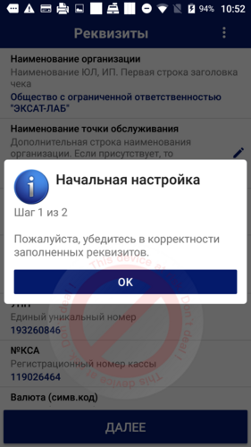 Необходимо убедиться в корректности заполненных реквизитов и нажать Далее.