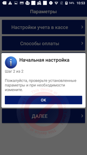 Примечание: Пользователь Кассир только единожды (при первом входе) имеет доступ к настройкам реквизитов и параметров, далее все функции по настройке выполняет пользователь Администратор.