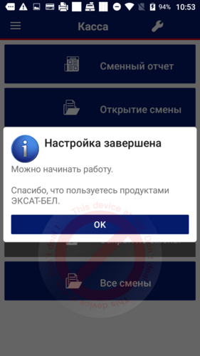 Касса готова к открытию первой смены. См подробнее Открытие смены