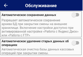 Разрешает автоматическое сохранение архива БД при закрытии смены на внешнее хранилище.