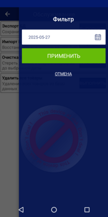 На экране «Обслуживание» в пункте «Очистка БД» нажать «Выполнить». В открывшемся окне «ФИЛЬТР» выбрать дату, по которую включительно будет очищена база данных, и нажать «Применить».