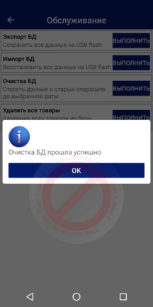 В сообщении об успешной очистке базы данных нажать кнопку «ОК». Будут удалены транзакции и записи, которые были созданы до указанной даты.