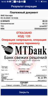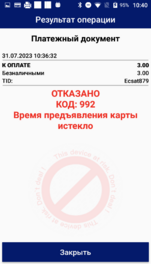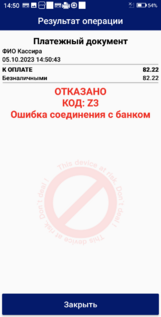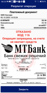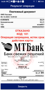 В случае отказа на экране будет отображена причина отказа в проведении операции вместе с цифровым кодом, действовать в соответствии с полученными рекомендациями.