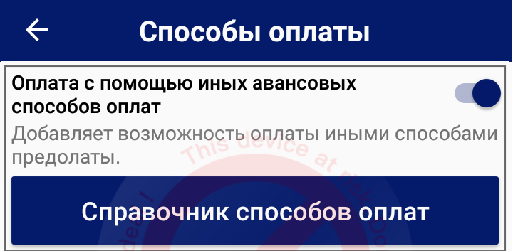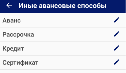 Нажмите кнопку «Справочник способов оплат» и добавьте наименование способа авансового платежа.
