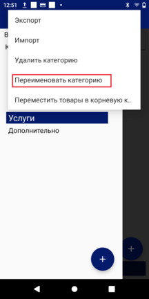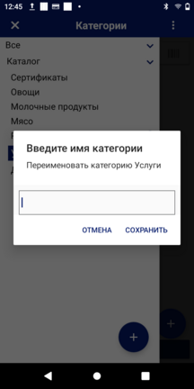 Для переименования категории товаров в zPOS.АРМ Кассира, выберите нажатием необходимую для переименования категорию