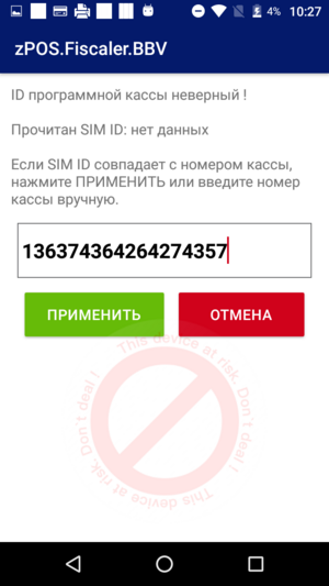 Введите ID Программной кассы (19 символов) который выданный вам при заключении договора с оператором программной кассы.