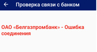 Связи нет, необходима проверка Интернет соединения или на стороне банка проводятся технические работы