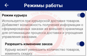 Далее перейти в пункт Настройки-Параметры-Специальные режимы работы и включить Режим курьера.