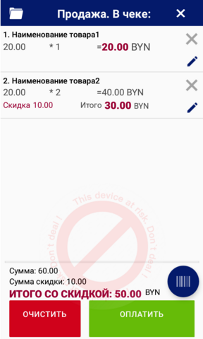 После добавления заказа на экране «Продажа. В чеке» будут отображены товарные позиции, переданные в файле заказа.