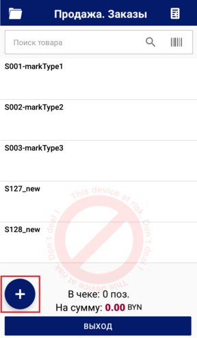 При включённом режиме курьера в главном меню вместо кнопки Продажа отображается кнопка Заказы.