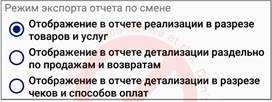- Отображение в отчете детализации в разрезе чеков и способов оплат