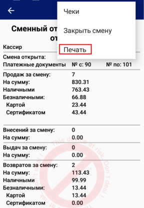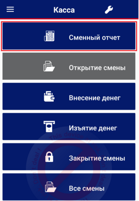 Для получения X-отчёта, нажмите кнопку «Сменный отчет».