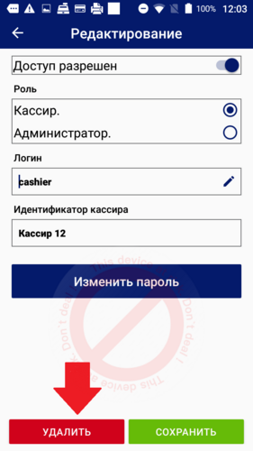 Пользователь будет удалён из списка пользователей zPOS. АРМ Кассира. Авторизация и работа с zPOS. АРМ Кассира, а также восстановление пользователя невозможно.